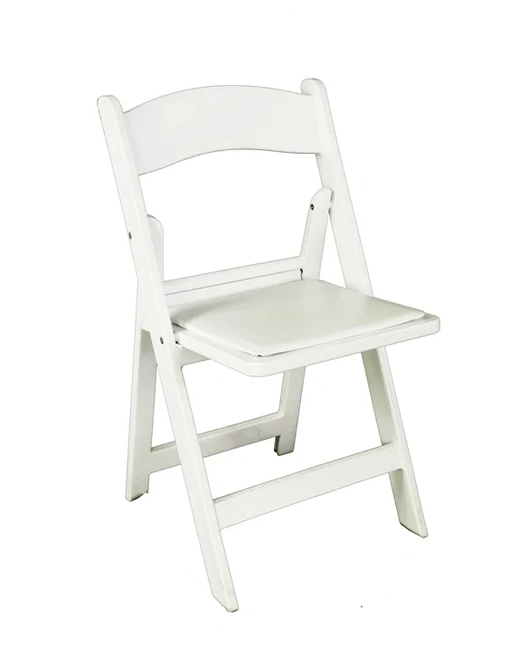 Classic white folding wedding chair with padded seat for hire in Sydney. Affordable and elegant seating for indoor and outdoor ceremonies.